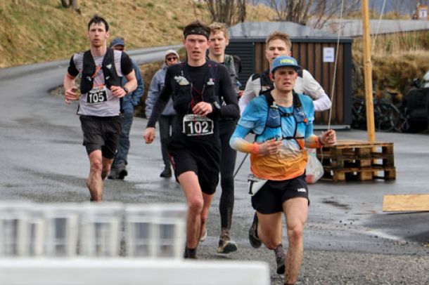 Herrepallen: Premiene ble utdelt av Anita Nybø som er direktør i Fløibanen, som velvilligst hadde stilt skinnegang og bane til rådighet for arrangørene i Fana IL. Premiepallen for menn bestod av Callum Smith, Joel Dyrhovden og Thorbjørn Ludvigsen. (Foto: Arne Dag Myking)