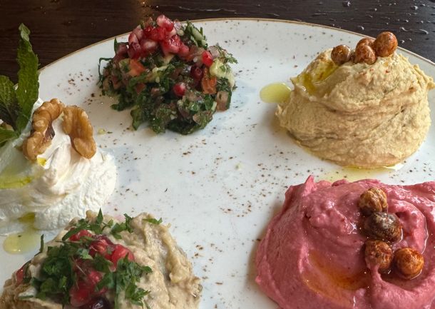 Skrell rødbeten og kjør alt sammen til en glatt puré og spe med kokevannet fra kikertene.