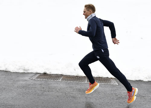 under foten i stedet for i hælpartiet og måler hele 51 mm. Med en aggressiv rocker er denne skoen utformet for, og forbeholdt, forfotsløpere som løper maraton på under 2.30.