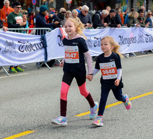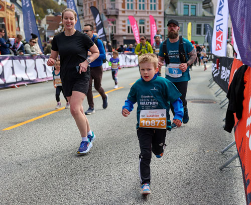 Bergen City Marathon lot også barna få prøve seg på gateløp og gav dem en smak av hvordan det er å løpe i en avsperret trasé der det står folk og heier på dem. På løpsprogrammet var det et eget 2 km langt barneløp der løypen var den samme som siste del av hel- og halvmaratonløypen. Det var nok en kjekk opplevelse for de minste løperne å få løpe med startnummer på brystet og bli heiet frem og. Her legges forhåpentligvis grunnlaget for masse idrettsglede i de kommende generasjoner.