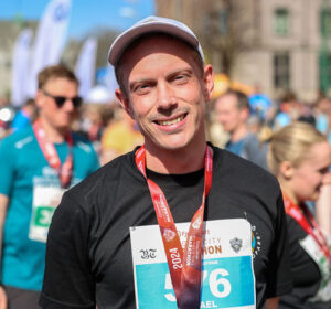 Mikael Eriksson er fra Sverige. Han har nettopp gjennomført en full maraton, og han er godt fornøyd: