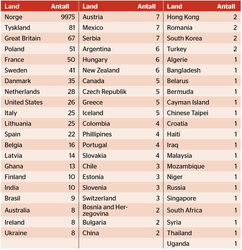 Løpere i Bergen City Marathon fordelt på nasjonalitet