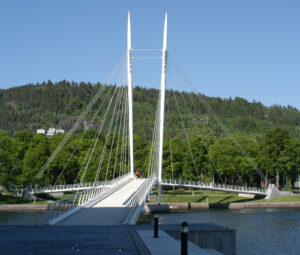 Landemerke: Mange har hatt glede av å løpe over denne brua som har et navn som passer i oppgave 2. (Foto: Petter Ulleland / Wikipedia)Mora har både OL- og VM-gull i langrenn, mens sønnen er på juniorlandslaget i samme idrett. Etternavnet har de felles.