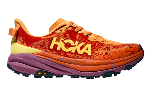 Hoka Speedgoat 6 har fått ny overdel i et tynnere og vevd materiale. Ekstra støttebånd i mellomfoten gir et stødig hold for foten, også på mer ujevne stier. Den 6. versjonen bygger videre på det som har gjort den til en populær terrengsko, men den er enda litt lettere og raskere enn tidligere versjoner. Passer for løpeturer på sti, samt grus- og kjerreveier. Produktet fås kjøpt hos Löplabbet.