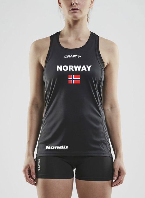 Norway-singleten har god passform og er svært behagelig til trening og konkurranse på varme sommerdager. Den fås kjøpt i Kondis sin profilbutikk: teamkondis.no.