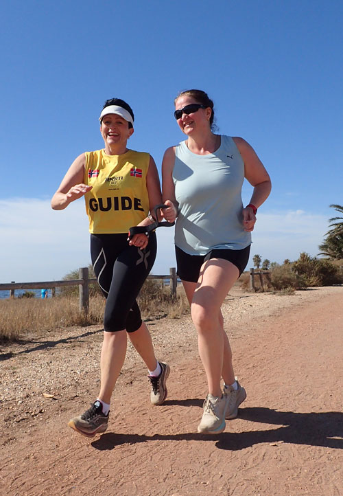 De som er ledsagere på løpeturene, gir beskjed når underlaget endrer seg fra for eksempel asfalt til grus, fast grus til løs grus, gir beskjed om ujevnheter og steiner, og leder den svaksynte utenom vanndammer og hindringer i veibanen.