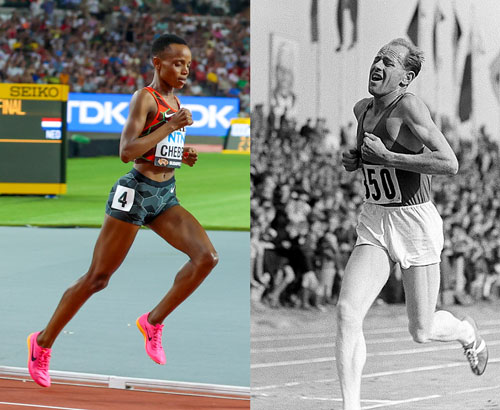 Det skjedde 70 år etter at Emil Zátopek var første mann under 29 minutter på 10 000 m. Zátopek klarte bragden i et stevne i Brussel 1. juni 1954. Og likheten var ikke bare at de begge brøt 29-minuttersgrensa for første gang, men de gjorde det også på så å si samme tid. Mens tsjekkiske Zátopek løp på 28.54,2, kom kenyanske Chebet i mål på 28.54,14.