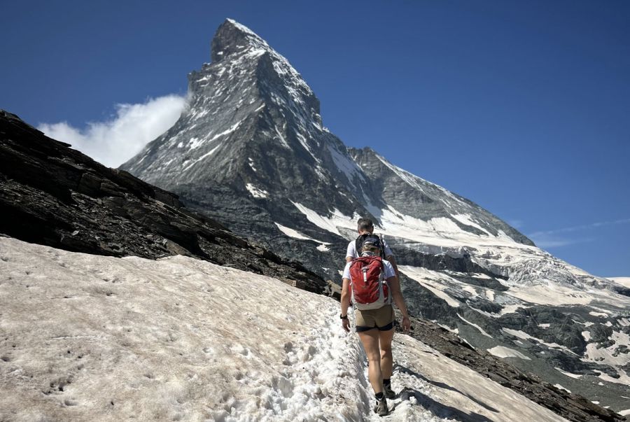 Når man trer ut av toget i Zermatt sentrum i midten av juli, fylles lungene med krystallklar og frisk fjelluft. Det er ca. 25 grader i solen, men fjelluften gjør at det likevel kjennes som en behagelig temperatur. Dalen har grønne plener, flotte trær og sildrende bekker. Det er et vakkert skue med majestetiske, snøkledde topper som omkranser dalen. «Toblerone-fjellet» Matterhorn rager mot himmelhvelvingen. Hvis det finnes et paradis på jorden, kan det være her, om du er en hengiven naturelsker.