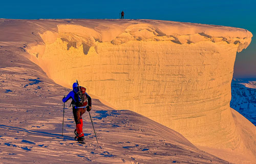 Turen til Jiehkkevárri (1834 moh,) ble helt spesiell av flere årsaker. For det første var dette den første fylkesturen som jeg gikk på truger og om natta. Morten hadde beregnet dette helt perfekt, og vi kom opp på toppen ca. 10 minutter før soloppgang. Det var helt ubeskrivelig vakkert å stå der med han ved siden av meg mens sola steg opp over spisse tinder der ute ved havet. Det var så mye vill natur som badet seg i det vakre morgenlyset og riktig viste seg frem for oss denne morgenen.