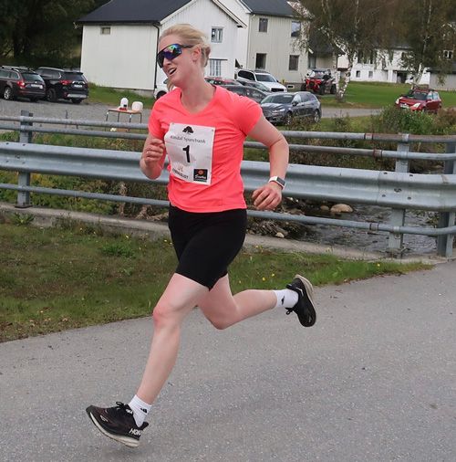 Lina Rivedal fra Varegg ble beste kvinne. Hun klarte akkurat å holde unna en jagende Renate Galleberg, som til slutt løp i mål 6 sekunder bak henne.