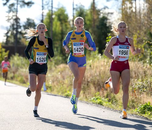 Tettrio: Amalie Sæten (midten) vant 5 kilometeren i Norgesløpet foran Wilma Anna Bekkemoen Torbiörnsson (til venstre) og Madelène Wanvik Holum. (Foto: Samuel Hafsahl)