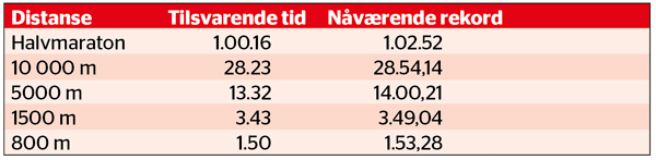 Hva 2.09.56 på maraton tilsvarer på andre distanser