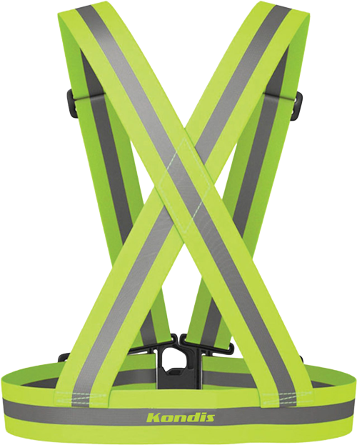 Dette enkle refleksbåndet er lett å slenge utenpå yttertøyet eller treningsklærne før en løpetur, og det fås kjøpt i Kondis sin profilbutikk teamkondis.no.