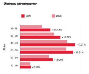 Sjøl om de unge er de som har mest økning, er det aldersgruppa 40-49 år som går mest ifølge Polar-undersøkelsen. 50-59-åringene ligger på andreplass, og bare de over 70 går færre skritt enn de mellom 16-29 år.