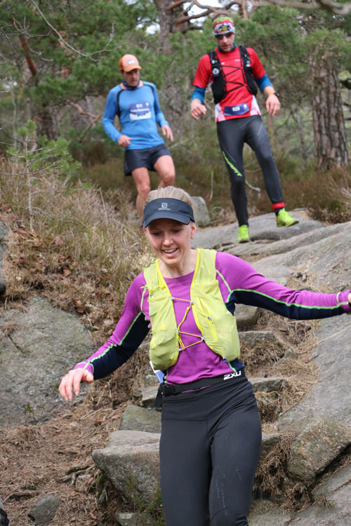I dameklassen ledet Therese Dahl Årvik fra start, og i mål var hun hele 51 minutter foran Anne-Sofie Pollestad som kom på andreplass. Desto større fight var det om den siste pallplassen. Kun 24 sekunder skilte det til slutt mellom tredje og femteplass, og det var Liv Torunn Netland som hadde den sterkeste spurten av de tre som kjempet om tredjeplassen. Veldig kult at spurtoppgjør avgjør pallen både i herre- og dameklassen etter henholdsvis 5 timer og 43 minutter og over 8 timer på teknisk krevende og kuperte stier.