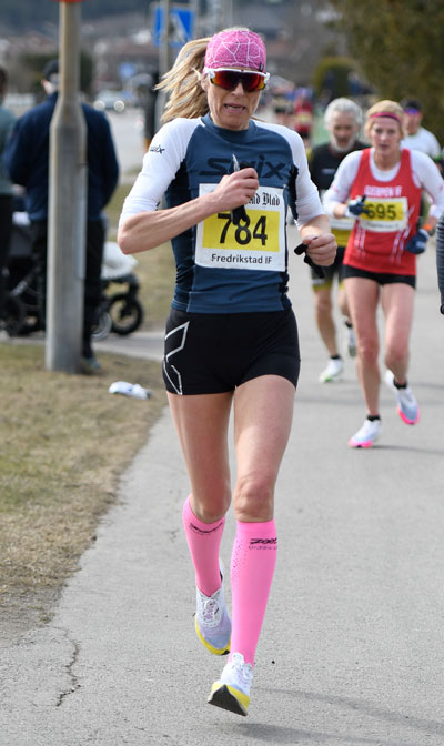 – Jeg trener alene unntatt på tirsdagene. Da løper jeg en tur på 13 km i skravletempo med en venninne. Hun er en habil birkebeinerløper, så av og til kan det likevel gå fort nok for min del. Det blir sånn at det er hun som prater de første to kilometerne, mens jeg henger etter som et slips før jeg får igjen pusten, forteller Dorte.