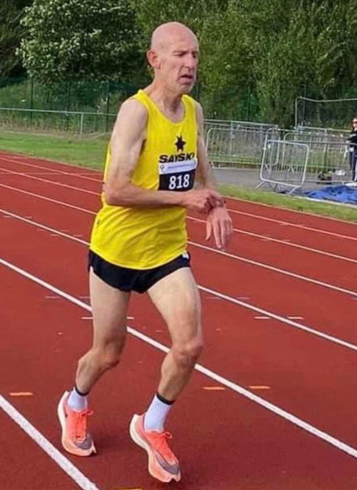 – Tre av øktene er kvalitetsøkter, og en av dem foregår på bane, beretter mannen som løp på høyt nasjonalt nivå fram til han var 38 år, for så å ta en pause fram til han fylte 58. Etter det har det gått stadig fortere, og i år har han også satt verdensrekord på 10 km med 34.32.