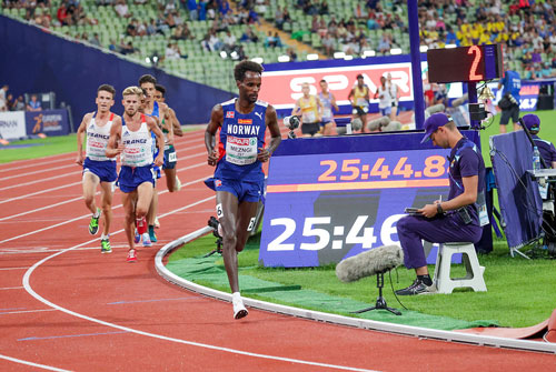 Langt mindre forventa var det at det skulle bli norsk medalje på 10 000 m for menn. Riktignok satte Zerei Kbrom Mezngi norsk 10 km-rekord med 27.39 i fjor høst, men årets sesong hadde så langt vært en god del svakere enn fjorårets.