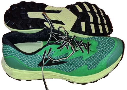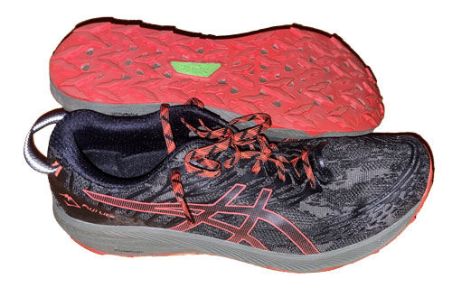 Asics Fiji Lite 3 har en større andel resirkulerte materialer enn forgjengeren og skal ha en yttersåle som gir bedre grep på gjørmete underlag. Mellomsålen er laget av Asics Flight Foam som til tross for lav sålehøyde gir en overraskende myk og god demping. Noen vil nok oppfatte sålen som for myk og foretrekker en mer kontant respons, slik man f. eks. får i Adidas Terreng Speed Ultra. Sålen har en tydelig rocker og en relativt lav dropp på 4 mm, noe som gjør at man naturlig lander mer på forfoten enn med sko som er flatere og som har høyere dropp. Asics Fuju Lite 3 har en oppgitt sålehøyde på lave 18-14 mm, men sammenlignet med flere av de andre skoene oppleves den ikke som noe lavere. Forskjellig metode for å måle sålehøyden kan være en forklaring. Selv om skoen gir god nok beskyttelse mot skarpe steiner og røtter, stiller den relativt lave sålehøyden, lave droppen og den myke sålen allikevel større krav til sterke føtter enn en maksimalistisk sko. Yttersålen har relativt lave knotter, men de gir godt grep med unntak av på skikkelig gjørmete underlag. Overdelen sitter godt på foten og er relativt romslig foran, men dette er en normalt bred sko. Hælkappen er polstret, men relativt stiv. Pløsen er relativt godt polstret og har også en lomme hvor man kan gjemme bort lissene. Adidas Terrex Speed Ultra og Asics Fuji Lite 3 har flere likheter: De er begge relativt lette, har en lav sålehøyde og en normalt bred passform. Men sålen i Asics-skoen er mykere, klart mer fleksibel og har en lavere dropp. Oppsummert er Asics Fuji Lite 3 en relativt lett sko som gir god kontakt med underlaget og som innbyr til fart.