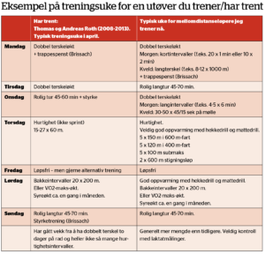 – For løpere har jeg dårlig erfaring med å kjøre periodisering mellom rolig, middels og harde uker slik skiløpere gjerne gjør. Den harde uka har lett for å blir for hard og den rolige gir nødvendigvis ikke den gevinsten man skulle ønske. Vi har en mye mer lineær tilnærming med ganske lik belastning hver uke.
