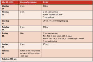 Eksempel på treningsuke for Grete Waitz