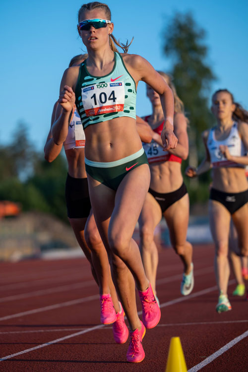 2 gull i årets junior-NM: Vet du hva denne løpssterke jenta heter, har du løsningen på oppgave 4. (Foto: Samuel Hafsahl)