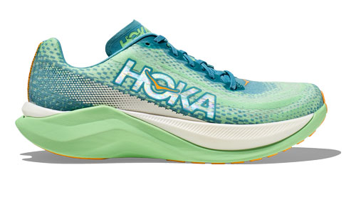 Hoka Mach X henter inspirasjon fra både Mach og Bondi-modellene. Den har en todelt mellomsåle med det raske PEBA-baserte skummet øverst mot fotbladet for god respons, mens vi nærmest underlaget finner et tradisjonelt CM-EVA-basert skum som gir en stødig plattform og god holdbarhet. Dette skal være en allsidig løpesko for rolig og raskere trening, og den selges hos Löplabbet.