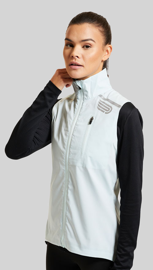 Pressios EcoLite Run Vest er utviklet ved hjelp av det lette EcoDura Stretch-materialet. Materialet er designet for å beskytte deg mot vær og vind samtidig som det har en meget god fuktighetshåndtering. Vesten har ventilasjonspaneler på baksiden som forbedrer pusteevnen ytterligere slik at du holder deg tørr under aktivitet. Den har reefleksdetaljer både foran og bak og lomme med glidelås på brystet.