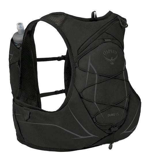 Osprey Duro/Dyna 1.5 er en løpevest fôret med kontaktnetting som skal gjøre den komfortabel, selv på de lengste turene. Flere lommer med stretchnetting og glidelåslomme foran på vesten gir enkel tilgang til næring og utstyr på farten. De øverste vestlommene inneholder to myke 500 ml-flasker. Dyro/Dyna er kompatibel med 1,5 Hydraulics LT reservoarer. Dyna-versjonen er tilpasset damer. Sekken fås kjøpt hos Löplabbet.