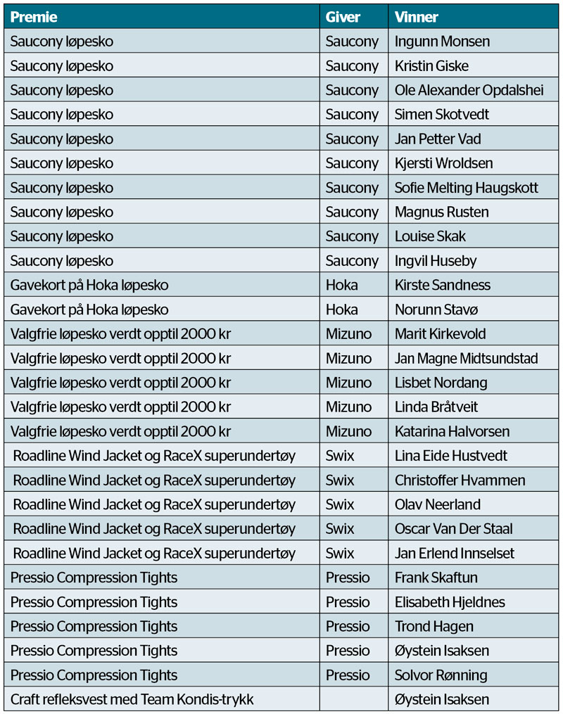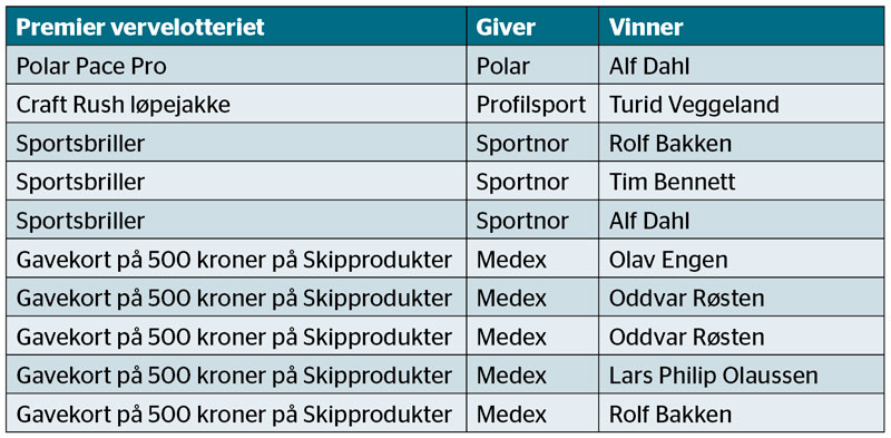Det ble ikke delt ut premier til de som sanket flest høydemeter, men alle som klarte å sanke minst 1200 høydemeter i løpet av måneden, ble med i trekningen av disse flotte premiene.
