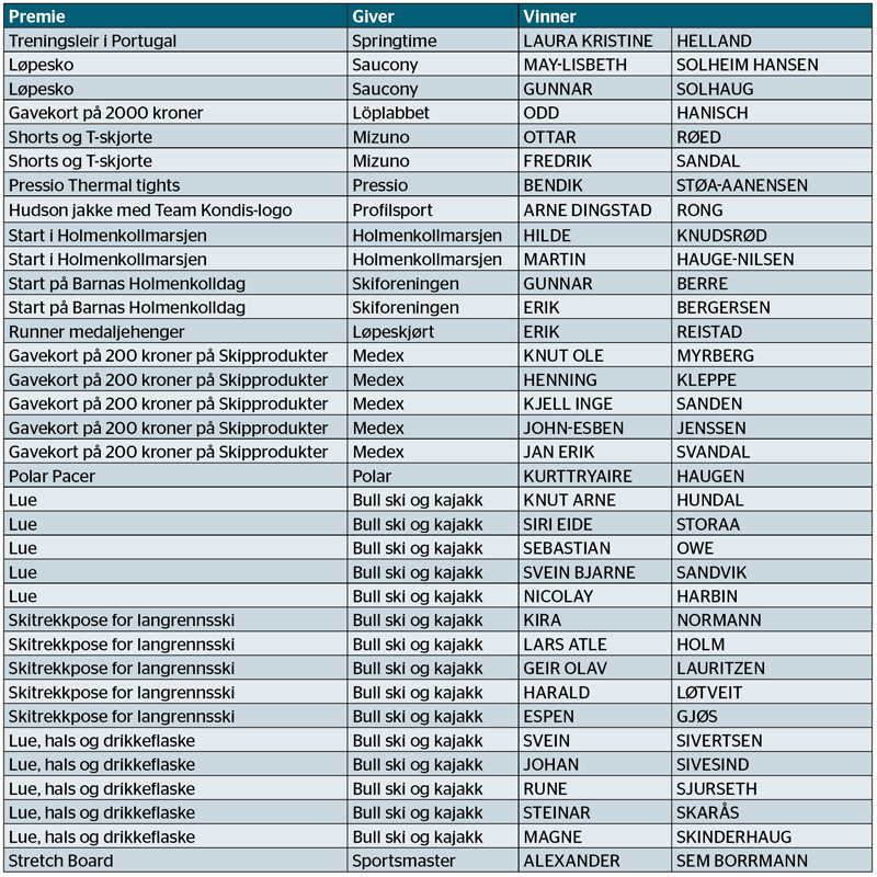 Her kunne deltakerne vinne både løpesko, gavekort, treningstøy og utstyr. Tusen takk til giverne for alle de flotte premiene vi fikk inn til lotteriet!