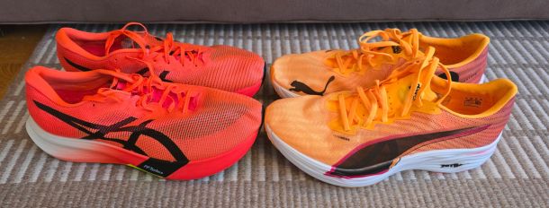 Asics Metaspeed Edge Paris: Asics-skoen er noen gram lettere og har litt bedre demping og respons enn Puma-skoen, men lav dropp kan by på utfordringer i lange løp. (Foto: Asics)